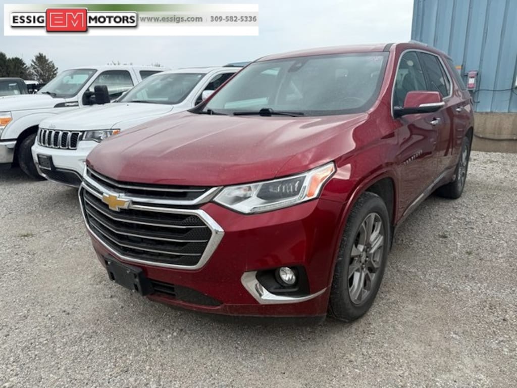 2018 Chevrolet Traverse Premier 4D Sport Utility AWD Cajun Red Tintcoat **LOCAL TRADE, **ACCIDENT FREE VEHICLE TITLE, 3.6L V6 SIDI VVT, Dual SkyScape 2-Panel Power Sunroof. 17/25 City/Highway MPG Located in Aledo Illinois, Essig Motors has been family owned and operated since 1989. Owner Jim Essig's experience in the auto industry began in 1975 working for his father's dealership in Washington, Illinois. We are honored to serve Mercer county, surrounding areas, and our growing online community with new, certified pre-owned, pre-owned, and also new and pre-owned commercial vehicles. Essig Motors offers an exceptional selection of new cars, trucks and SUVs including Chevrolet, GMC, Chrysler, Jeep, Dodge and Ram. Our knowledgeable, friendly sales staff is here to answer your questions and help you find the vehicle that meets your needs today!