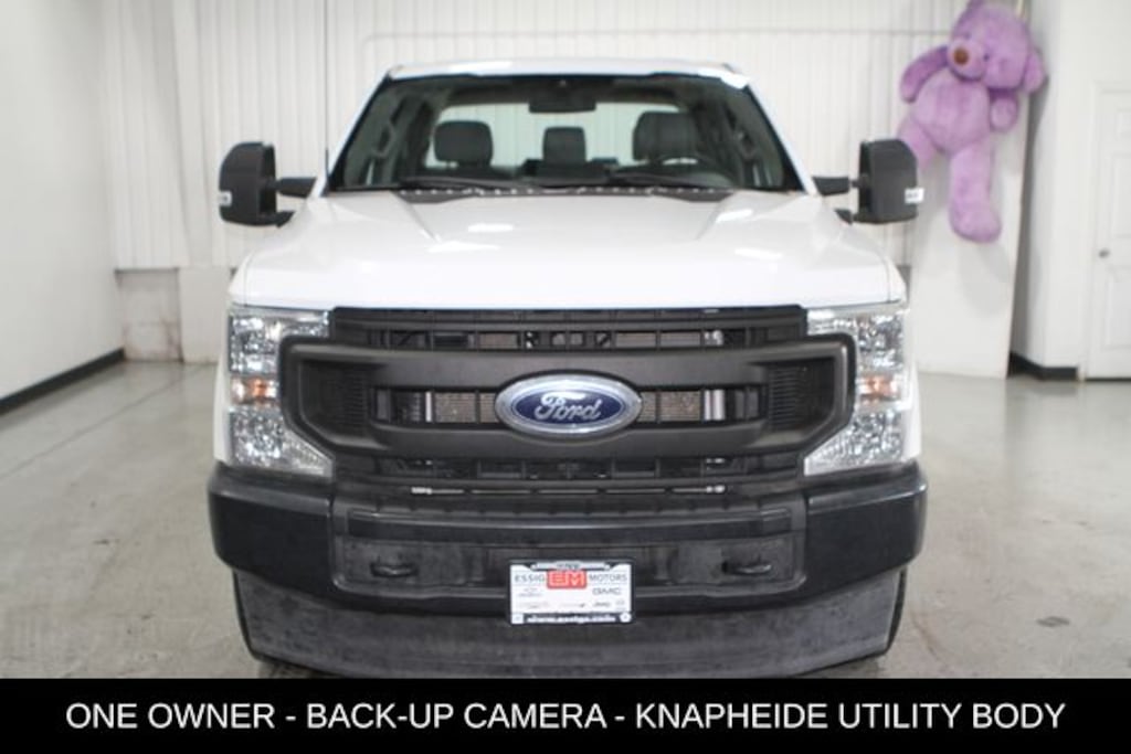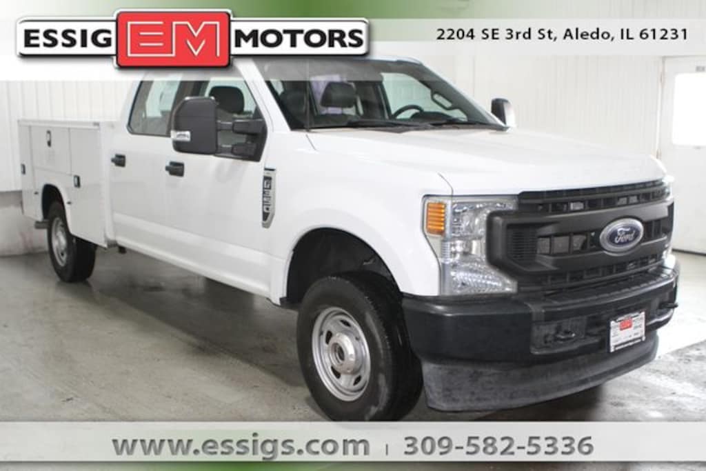 2022 Ford F-350SD XL 4D Crew Cab 4WD Oxford White **ONE OWNER, ** NEW TIRES, **BACK-UP CAMERA**, **KNAPHEIDE UTILITY BODY READY WORK TRUCK**, Single Rear Wheels, 6.2L V8 EFI SOHC 16V Flex Fuel, 10-Speed Automatic. Odometer is 15921 miles below market average! Located in Aledo Illinois, Essig Motors has been family owned and operated since 1989. Owner Jim Essig's experience in the auto industry began in 1975 working for his father's dealership in Washington, Illinois. We are honored to serve Mercer county, surrounding areas, and our growing online community with new, certified pre-owned, pre-owned, and also new and pre-owned commercial vehicles. Essig Motors offers an exceptional selection of new cars, trucks and SUVs including Chevrolet, GMC, Chrysler, Jeep, Dodge and Ram. Our knowledgeable, friendly sales staff is here to answer your questions and help you find the vehicle that meets your needs today!