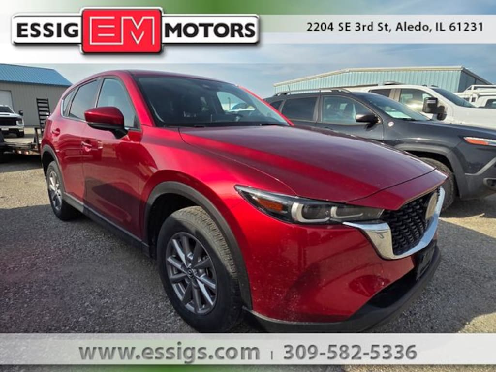 Recent Arrival! 2022 Mazda CX-5 2.5 S Preferred Package 4D Sport Utility AWD Soul Red Crystal Metallic **LOCAL TRADE, **ONE OWNER, CX-5 2.5 S Preferred Package 4D Sport Utility AWD, 6-Speed Automatic, Heated Front Bucket Seats, Leather Seat Trim, Power moonroof. 24/30 City/Highway MPG 24/30 City/Highway MPG Located in Aledo Illinois, Essig Motors has been family owned and operated since 1989. Owner Jim Essig's experience in the auto industry began in 1975 working for his father's dealership in Washington, Illinois. We are honored to serve Mercer county, surrounding areas, and our growing online community with new, certified pre-owned, pre-owned, and also new and pre-owned commercial vehicles. Essig Motors offers an exceptional selection of new cars, trucks and SUVs including Chevrolet, GMC, Chrysler, Jeep, Dodge and Ram. Our knowledgeable, friendly sales staff is here to answer your questions and help you find the vehicle that meets your needs today!