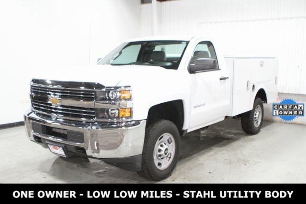 2017 Chevrolet Silverado 2500HD Work Truck 2D Standard Cab RWD Summit White **ONE OWNER, **LOW LOW MILES, **STAHL UTILITY BODY READY WORK TRUCK**, Vortec 6.0L V8 SFI Flex Fuel VVT. Odometer is 96495 miles below market average! Located in Aledo Illinois, Essig Motors has been family owned and operated since 1989. Owner Jim Essig's experience in the auto industry began in 1975 working for his father's dealership in Washington, Illinois. We are honored to serve Mercer county, surrounding areas, and our growing online community with new, certified pre-owned, pre-owned, and also new and pre-owned commercial vehicles. Essig Motors offers an exceptional selection of new cars, trucks and SUVs including Chevrolet, GMC, Chrysler, Jeep, Dodge and Ram. Our knowledgeable, friendly sales staff is here to answer your questions and help you find the vehicle that meets your needs today!