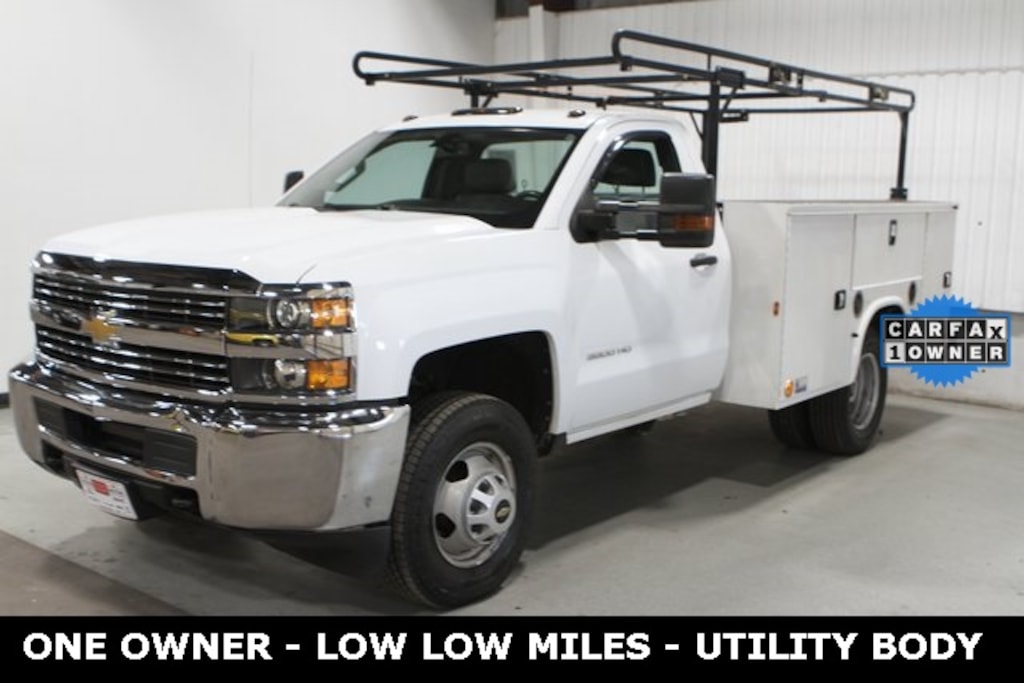 2017 Chevrolet Silverado 3500HD Work Truck 2D Standard Cab RWD Summit White **ONE OWNER, **LOW LOW MILES, **UTILITY BODY READY WORK TRUCK**, KNAPHEIDE UTILITY BODY, Vortec 6.0L V8 SFI VVT, 6-Speed Automatic HD Electronic with Overdrive, Dual rear wheels. Odometer is 101623 miles below market average! Located in Aledo Illinois, Essig Motors has been family owned and operated since 1989. Owner Jim Essig's experience in the auto industry began in 1975 working for his father's dealership in Washington, Illinois. We are honored to serve Mercer county, surrounding areas, and our growing online community with new, certified pre-owned, pre-owned, and also new and pre-owned commercial vehicles. Essig Motors offers an exceptional selection of new cars, trucks and SUVs including Chevrolet, GMC, Chrysler, Jeep, Dodge and Ram. Our knowledgeable, friendly sales staff is here to answer your questions and help you find the vehicle that meets your needs today!