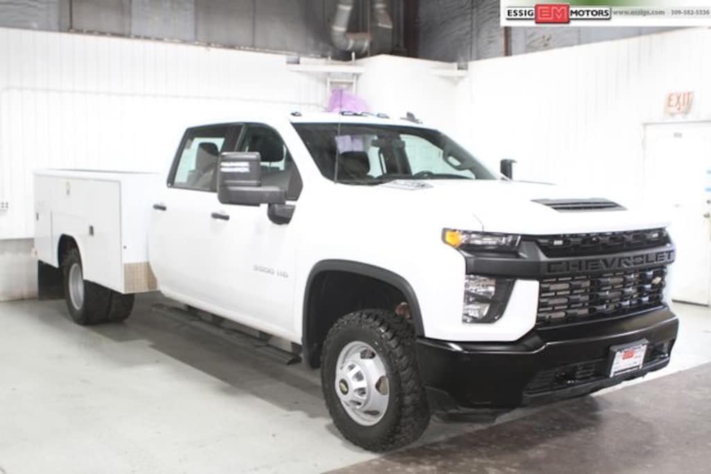 Recent Arrival! 2023 Chevrolet Silverado 3500HD Work Truck 4D Crew Cab 4WD, Summit White **ONE OWNER, **LOW LOW MILES, **KNAPHEIDE UTILITY BODY READY WORK TRUCK**, Duramax 6.6L V8 Turbodiesel, 10-Speed Automatic. Located in Aledo Illinois, Essig Motors has been family owned and operated since 1989. Owner Jim Essig's experience in the auto industry began in 1975 working for his father's dealership in Washington, Illinois. We are honored to serve Mercer county, surrounding areas, and our growing online community with new, certified pre-owned, pre-owned, and also new and pre-owned commercial vehicles. Essig Motors offers an exceptional selection of new cars, trucks and SUVs including Chevrolet, GMC, Chrysler, Jeep, Dodge and Ram. Our knowledgeable, friendly sales staff is here to answer your questions and help you find the vehicle that meets your needs today!